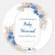 Boho Blue Pampas Grass Baby Shower Classic Round Sticker