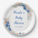 Boho Blue Pampas Grass Baby Shower Paper Plate