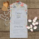 ALSO AVAILABLE WITH A QR CODE TO SCAN IN THE RSVP AREA. This design features a dusty blue, pink, and red flower border with greenery. Personalized All-In-One invitations are a unique combination of both a beautifully printed custom invitation with an easy to tear off perforated RSVP postcard. And they are so easy to use! You simply fold, then seal the back flap with the three included clear stickers, and mail. And when your guests receive your custom invite, they just tear the perforated RSVP Card off and drop it back in the mail to you!