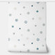 Boho blue small floral seamless pattern wallpaper; great addition to any infant, child's bedroom or other.