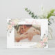 Boho Blush Floral Feather Wedding Photo Thank You Card