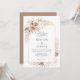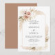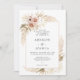Elegant floral bohemian style wedding invitation featuring two floral and pampas grass arrangements as well as a fine line frame.