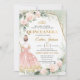 Boho blush roses gold frame ball gown Quinceanera Invitation