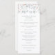 Ce délicat menu botanique mariage présente des tons de corail, de pêche, de gris et de bleu gris, et regorge de feuilles, de fleurs et d'accents.