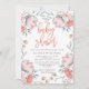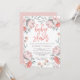 This stylish, feminine baby shower invitation features watercolor flowers and leaves in muted shades of pink and grey.