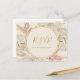 This boho botanical | ivory menu choice RSVP postcard is perfect for your elegant rustic floral, green, peach, rose gold wedding. Design features a gold frame or bouquet with modern blush pink pampas grass, simple sage, ivory, champagne palm leaf, and classic beach greenery. The flowers may include pink rose and orchid. The design is ideal for a classy vintage terracotta, beige, rust, winter, spring, fall wedding. Please find other matching or coordinating wedding stationery in the rest of the collection suite.