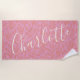 Boho Botanical Leaf Pattern in Pink Personalized Beach Towel