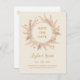 Cette carte postale d'invitation à sauver avec une illustration botanique tropicale boho et une couleur ivoire est parfaite pour votre mariage élégant et rustique avec des fleurs, du vert, du pêche et du rose gold. Le design présente un cadre ou un bouquet doré avec de l'herbe de pampa rose moderne, du simple sauge, de l'ivoire, une feuille de palmier champagne et une verdure de plage classique. Les fleurs peuvent inclure des roses roses et des orchidées. Le design est idéal pour un mariage classe vintage avec des tons terracotta, beige, rouille, pour l'hiver, le printemps ou l'automne. Veuillez trouver d'autres papeteries de mariage assorties ou coordonnées dans le reste de la collection.