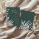 Elevate your bridal shower with this enchanting boho-inspired invitation, featuring original watercolor artwork for a touch of natural elegance. Lush eucalyptus leaves in serene rustic green intertwine with delicate lavender and blooming peonies, creating a whimsical floral arrangement. Set against a rich dark green background, the design offers a striking contrast that enhances its sophisticated and modern appeal. Perfect for rustic, garden, or contemporary celebrations, this invitation blends natural beauty with timeless charm. Easily customize it with your event details to create a unique and memorable keepsake for your bridal shower.