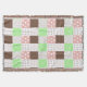 Cute whimsical boho blanket with pink, mauve, brown, burgundy and sage green polka dots and stripes pattern. Earthy warm colours.