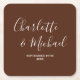 Boho Brown Script Minimalist Wedding Square Paper Coaster