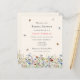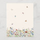 This is a boho and budget friendly rustic and whimsical bridal shower invitation. The design features a colourful and delicate field of summery wildflower florals in pretty shades of blue, terracotta, pink, purple and yellow. The butterflies and bees add the finishing whimsical and pretty touch.