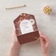 ALSO AVAILABLE WITH A QR CODE TO SCAN IN THE RSVP AREA OR WITHOUT DINNER SELECTION OPTIONS. This design features a burnt orange rust, peach, brown and cream watercolor fall boho floral bouquet frame on a distressed rust background. Personalized All-In-One invitations are a unique combination of both a beautifully printed custom invitation with an easy to tear off perforated RSVP postcard. And they are so easy to use! You simply fold, then seal the back flap with the three included clear stickers, and mail. And when your guests receive your custom invite, they just tear the perforated RSVP Card off and drop it back in the mail to you!