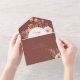 ALSO AVAILABLE WITH A QR CODE TO SCAN IN THE RSVP AREA OR WITHOUT DINNER SELECTION OPTIONS. This design features a burnt orange rust, peach, brown and cream watercolor fall boho floral bouquet frame on a distressed rust background. Personalized All-In-One invitations are a unique combination of both a beautifully printed custom invitation with an easy to tear off perforated RSVP postcard. And they are so easy to use! You simply fold, then seal the back flap with the three included clear stickers, and mail. And when your guests receive your custom invite, they just tear the perforated RSVP Card off and drop it back in the mail to you!