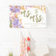 A boho chic, simple, modern, elegant, formal and classy bridal shower backdrop with a "Miss to Mrs" title, featuring a garden background of lush purple blue hydrangeas and gold butterflies (this is a digital effect, not real gold) and modern calligraphy. A chic, timeless design that combines traditional, formal wedding design with modern script calligraphy and a trendy layout.