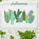 Boho Cactus Painting in Green Personalized Name Kitchen Towel