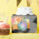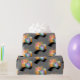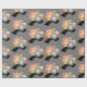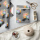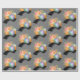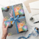 Wrapping paper with a watercolor illustration of an orange camera with a floral bouquet and a black and white wavy film strip.