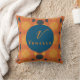 Boho Celestial Sun Moon Orange Monogram Script Throw Pillow