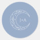 Seal your celestial theme with the Boho Celestial Wedding Sticker. Against a dusty blue backdrop, the crescent moon and stars, paired with the stylishly simple customizable initials of the couple, infuse a sense of magic. Elegant leaves delicately incorporated become an enchanting emblem