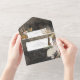 AVAILABLE WITH OR WITHOUT A QR CODE OR WITH OR WITHOUT DINNER SELECTION OPTIONS. Modern and unique, this design features bouquet of dried grasses, flowers, and plants in boho style on a soft black background that has been distressed with champagne gold. Add a QR code to your invitation so that gusts can quickly access your wedding Website for details, directions, menu options, and more, or add your gift registry Web URL. Personalized All-In-One invitations are a unique combination of both a beautifully printed custom invitation with an easy to tear off perforated RSVP postcard. And they are so easy to use! You simply fold, then seal the back flap with the three included clear stickers, and mail. And when your guests receive your custom invite, they just tear the perforated RSVP Card off and drop it back in the mail to you!