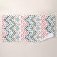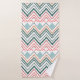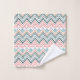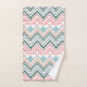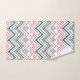 Ce kit de serviettes a un design boho avec des lignes, des points et des formes diamant en bleu rétro, aqua, rose et orange.
