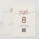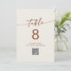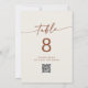These boho chic bohemian cream QR code table numbers are perfect for a minimalist wedding. The neutral terracotta burnt orange and cream modern bohemian design features simple rustic calligraphy with a unique yet classic style.