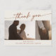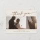This boho chic bohemian cream wedding photo thank you postcard is perfect for a minimalist wedding. The neutral terracotta burnt orange and cream modern bohemian design features simple rustic calligraphy with a unique yet classic style.