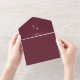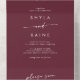This boho chic burgundy red dual QR code wedding in all in one invitation is perfect for a minimalist wedding. The dark maroon wine red modern bohemian design features simple rustic calligraphy with a unique yet classic style.