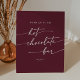 This boho chic burgundy red hot chocolate bar sign is perfect for a minimalist wedding. The dark maroon wine red modern bohemian design features simple rustic calligraphy with a unique yet classic style.