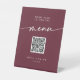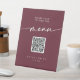 Boho Chic Burgundy Red QR Code Wedding Menu Pedestal Sign