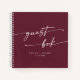 This boho chic burgundy red wedding guest book is perfect for a minimalist wedding. The dark maroon wine red modern bohemian design features simple rustic calligraphy with a unique yet classic style.