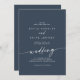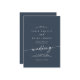 This boho chic dark navy blue front and back wedding invitation is perfect for a minimalist wedding. The muted and moody neutral dark blue modern bohemian design features simple rustic calligraphy with a unique yet classic style.