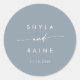 These boho chic dusty blue names envelope seals are perfect for a minimalist wedding suite. The neutral light blue grey modern bohemian design features simple rustic calligraphy with a unique yet classic style.