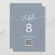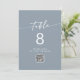 These boho chic dusty blue QR code table numbers are perfect for a minimalist wedding. The neutral light blue grey modern bohemian design features simple rustic calligraphy with a unique yet classic style.