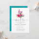 Boho chic pink and turquoise blue watercolor floral wine tasting bridal shower invitations designed to be quickly and easily customizable to your event specifics.