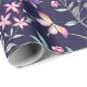 Boho Chic Floral & Butterflies Navy Wrapping Paper