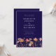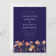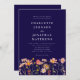 Boho chic floral Fall navy blue and white wedding invitation with watercolor Wildflower Meadow hand painted flowers. This elegant navy blue Wedding Invitation, a stunning blend of autumnal charm and elegant sophistication. This watercolor design showcases hand-painted wildflowers in a vibrant garden meadow, with a rich palette of burnt orange, terracotta, brown, purple, yellow, coral, burnt umber, peach, and soft pink, capturing the warmth and beauty of the fall season on an elegant navy blue background. Elegant modern white typography adds a refined touch, while the whimsical florals bring a personal, boho flair to your invitation. With easy-to-use templates, you can effortlessly customize all your essential wedding details.