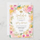Class of 2024!! A boho chic spring, summer floral watercolor graduation announcement invitation featuring soft pastel pink, yellow and orange floral watercolor and gold glitter confetti typography graduation party invite with hand painted flowers, greenery watercolor leaf branches with gold geometric terrarium frame on editable white background, add your photo at the back, perfect for open house !