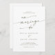 This boho chic green and white QR code French wedding invitation is perfect for a minimalist wedding. The neutral olive sage green and white modern bohemian design features simple rustic calligraphy with a unique yet classic style.