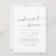 This boho chic green and white wedding rehearsal dinner invitation is perfect for a minimalist night before wedding rehearsal. The neutral olive sage green and white modern bohemian design features simple rustic calligraphy with a unique yet classic style.