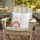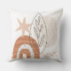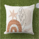 Boho chic moon stars rainbow flowers line art in neutral colours of beige, tan, pink, rust. A perfect way to add effortless boho chic to a backyard, patio, balcony, indoor or outdoor seating area. Back of pillow is a solid neutral colour.