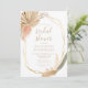 This trendy boho bridal shower invitation features a gold geometric frame decorated with watercolor dried tropical palm leaves and pampas grass in shades of beige, peach and muted green. Customize the beige text with your bridal shower details. The reverse side is a coordinating shade of solid peach-tinted beige.