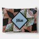 A beautiful Boho Chic accessory or makeup pouch designed with the photographic images of embroidered floral pillows in a patchwork pattern. It's a beautiful illusion that is both traditional and boho chic. Deep, rich earthy multi colour patterns on each side accented with blue and black. Personalize with a Name and/or Initials on each or either side. This image is original photography by JLW_PHOTOGRAPHY.