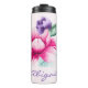 NewparkLane - Boho Chic Thermal Tumbler, with elegant watercolor flowers in hot pink and purple. With a soft pink background and your own name or personal text in elegant script typography.