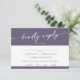Cette carte rsvp chic boho à la carte violet de prune est parfaite pour un mariage minimaliste. Le ton moody brun violet bijou moderne design bohème dispose de calligraphie rustique simple avec un style unique mais classique. Inclure les options de repas pour votre réception sur la carte de l'enceinte.