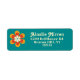 Boho Chic rétro floral, étiquette d'adresse de retour. Couleur Arrière - plan affichée en turquoise avec coordination du texte beige dans les styles de police rétro. accent floral dans les tons orange et beige.