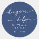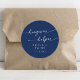 This boho chic royal blue hangover helper favour classic round sticker is perfect for a minimalist wedding. The bold dark blue modern bohemian design features simple rustic calligraphy with a unique yet classic style.