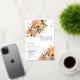 Embrace the warmth of the country sun with our boho-rustic orange bridal shower invitations, adorned with beautiful sunflowers, green leaves, and brown red branches. Perfect for the free-spirited bride-to-be. with a brushed script typography on a simple editable white background and real gold foil.