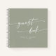 This boho chic sage green wedding guest book is perfect for a minimalist wedding. The neutral light green earth tone modern bohemian design features simple rustic calligraphy with a unique yet classic style.
