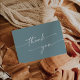This boho chic seafoam teal flat wedding thank you card is perfect for a minimalist wedding. The colourful blue green modern bohemian design features simple rustic calligraphy with a unique yet classic style reminiscent of the beach, ocean and summer seaside.